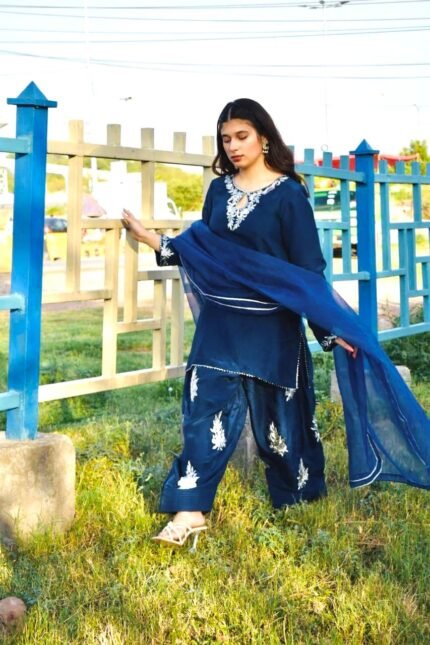 Graceful, poetic, and refined — this farshi shalwar speaks to the timeless soul with a modern edge. Whether you're dressing up for Eid, a pre-wedding event, or a sundown garden party, Abshaar-e-Neel brings quiet luxury to your wardrobe. 🌙💙