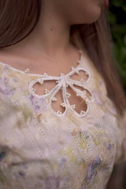 Light-colored chicken kari dress with a cutout neckline. Elegant and breezy 🌞💫